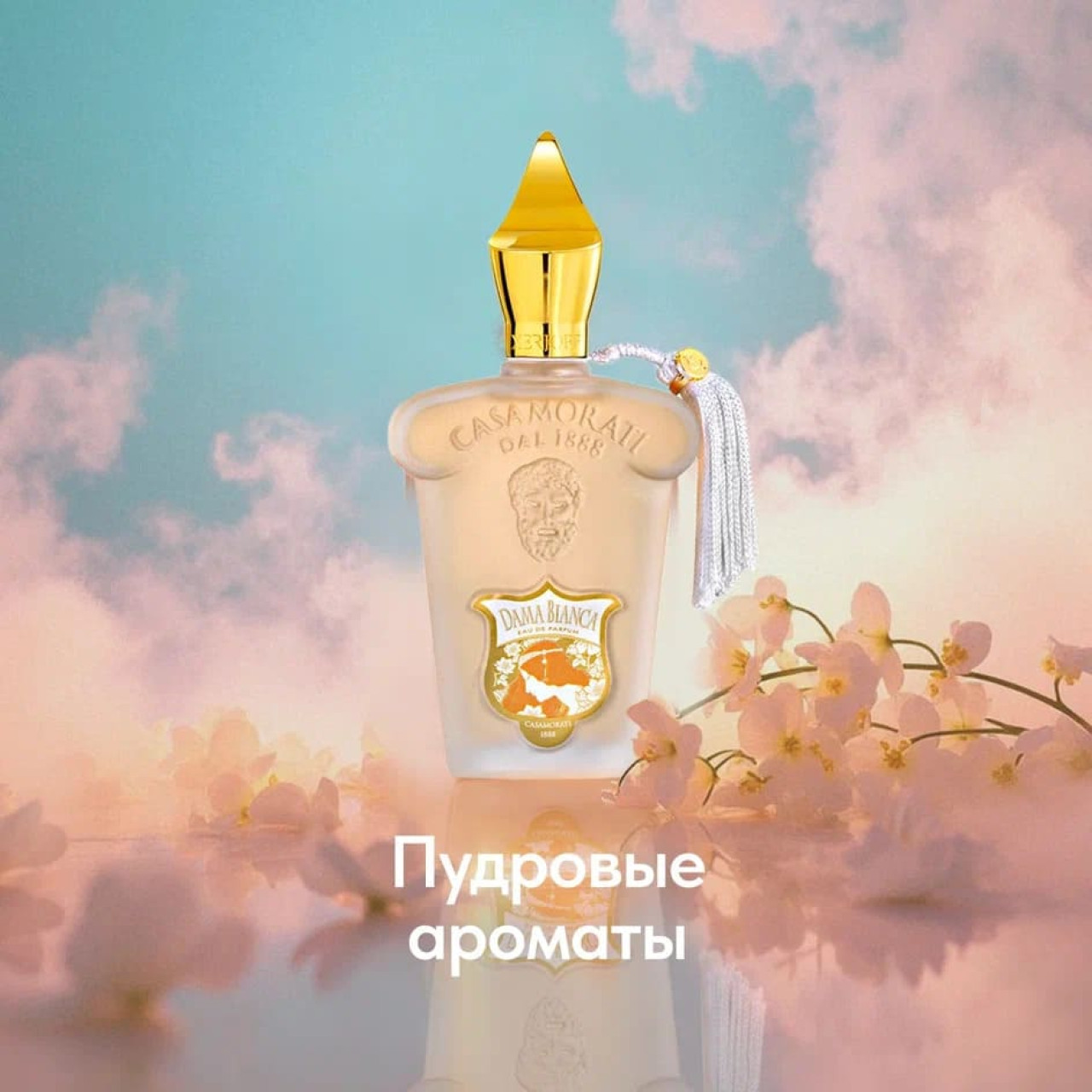 Внимание следует уделить и ярко-желтому флакону, который переливается, словно самородок. Золотой колпачок CASAMORATI 1888 DAMA BIANCA традиционно украшен шелковой белой кисточкой.
